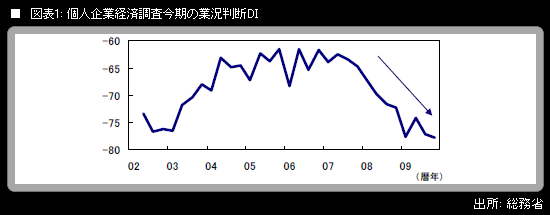 筆者は昨年秋に、日本経済の「草の根」とも呼ぶべき個人企業の景況感が、大企業や中小企業の場合とは異なり、悪化している問題を取り上げたことがある。直近の数字を見ると、「草の根」の企業マインドは一段と悪化している。