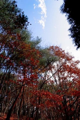 小宮沼平から野手上山へ向かう途中、見上げる空。紅葉の季節も過ぎ冬がもう目の前に迫っている。この次の日、飯舘村に雪が降った