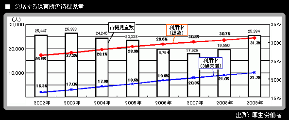 政権交代が実現しても、都市部の「待機児童」問題の解決策が一向に示されない。与党となった民主党はしがらみがないはずだが、自公政権時代から続く保育行政にメスを入れようとしない。