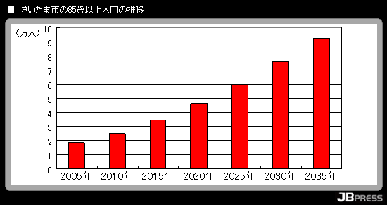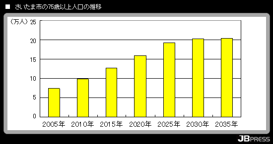 これからお年寄りが急増することが分かりますね。どちらの市も、昨年当選された30代(千葉市)と40代(さいたま市)の若い市長さんです。将来を見据えた政策を実行していただけると期待しています。