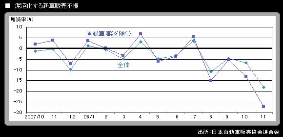 一言で言うと、かつてない自動車販売不振から始まった今回の日本の不況は、実は金融危機本格化のはるか前に到来していた。不況の元凶は金融ばかりではない。いや、自動車こそが引き金なのだ。