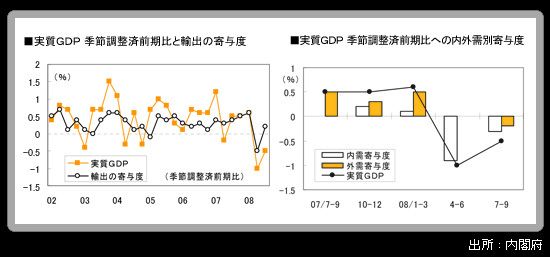9日、内閣府から7-9月期の四半期別GDP(国内総生産)2次速報(2次QE)が発表された。実質GDPは1次QE時点の前期比▲0.1%(同年率▲0.4%)から、前期比▲0.5%(同年率▲1.8%)へと大幅に下方修正された。主因は、民間在庫品増加と政府最終消費支出の下方修正。民間企業設備は前期比▲1.7%から同▲2.0%に小幅下方修正されたものの、前期比寄与度は▲0.3%で変わらなかった。内外需別の寄与度は、内需が+0.1ポイントから▲0.3ポイントに下方修正、外需は▲0.2ポイントで変わらず。また、実質GDPは前年同期比では▲0.1%から▲0.5%に下方修正された(マイナスは2002年4-6月期の▲0.2%以来)。