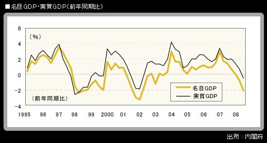 また、名目GDPは、1次QE時点の前期比▲0.5%(同年率▲2.1%)から、前期比▲0.7%(同年率▲2.7%)に下方修正された。内外需別の寄与度は、内需が+0.3ポイントから+0.1ポイントに下方修正、外需は▲0.8ポイントで変わらず。名目GDPの前年同期比は、▲1.7%から▲2.1%に下方修正された(2002年1-3月期以来の大きなマイナス幅)。1-3月期が同 0.0%、4-6月期が同▲0.8%なので、マイナス幅は7-9月期に拡大を加速したことが分かる。