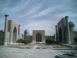 ウズベキスタンの観光都市、サマルカンドにそびえ立つイスラム建築