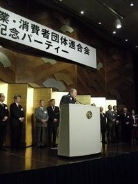 国民生活産業・消費者団体連合会の発足パーティー(12月2日、壇上は会長と理事)