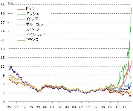 図1に見るごとく、1999年のユーロ発足まで相当程度の幅があったユーロ圏各国間の長期金利格差は、2000年から2008年にかけて完全に消滅し、ユーロ圏内同一金利(長短ともに)が成立した。