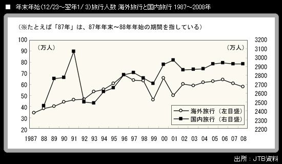 この年末年始に帰省される方は、国内旅行人数が増えているか減っているか、ひとつ観察してみてはいかがだろうか。