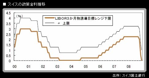 欧州では、スイス国立銀行(SNB)が、政策金利であるLIBOR3カ月物誘導レンジを0.5%引き下げて、年0~1.0%とした。声明文は、「スイスフランのマネーマーケットに潤沢で柔軟な流動性供給を継続する。