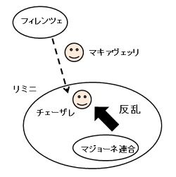 「反乱(マジョーネの乱)」の様子を探るために、マキァヴェッリはフィレンツェ政府からチェーザレのもとに送り込まれた。