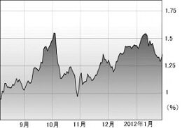 では日本国債のCDSはどうなっているだろうか。1月30日現在の日本国債のスプレッドは1.35%。トヨタの1.7倍だ。最近は少し落ち着いているが、今月上旬につけた1.54%は、2011年10月の市場最高値と並ぶ。