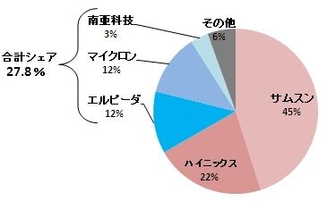 図1 企業別DRAMシェア(2011年7~9月期)、出所:米IHSアイサプライ