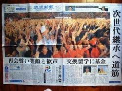 また、閉会式を報じた琉球新報は通常ならスポーツ新聞でもありえない紙面レイアウトで盛り上がりを報じた。一面と最終面の見開きを一枚の巨大なカラー写真で埋めたのだ。繊毛のようにびっしりと天に向かって伸びる手が写しこまれており、観客の興奮をはっきりと伝えるド迫力の写真だ。力の入った紙面構成であり、大会の盛り上がりは、このような地元メディアの力の入れ方を抜きにして考えられない。