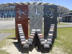 2002年日韓共催となったサッカーワールドカップを記念したモニュメント。その際、新たに日本のサッカーの本場静岡県につくられたエコバスタジアムの前にある