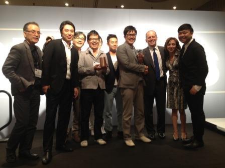 アワ-ドを受賞して喜ぶ八木取締役(右から4人目)ら関係者