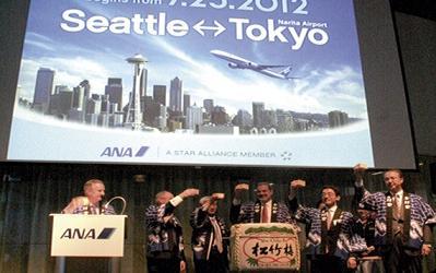 全日本空輸(ANA)のシアトル-成田路線の就航を祝うレセプションが6月28日、レントン市のボーイング社で催された。シアトルからアジアへ広がる新たな一翼を担うべく、国際線ネットワーク強化を図るANAが新路線へ意気込みを伝えた。