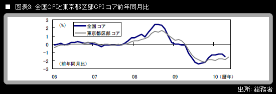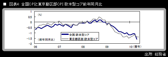 「食料(酒類を除く)及びエネルギーを除く総合」(いわゆる欧米型コア)を見ると、前年同月比▲1.4%で、マイナス幅は前月から変わらなかった。