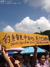 「钓鱼岛是中国的、苍井空是世界的」を掲げるデモの参加者