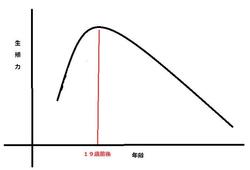 右の図にある通り、女性の生殖力のピークは19歳です。子供を産む生殖力のピークとは、みかけ(化粧した顔でもエステ直後の人工的な工作を施した顔でもなく、自然なスッピンの顔ですのでお間違えのないように)のピークでもあります。