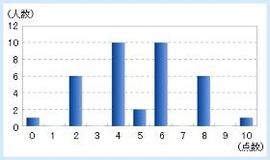 (4) 分布が0点に一番多いもの実は、このいずれのデータも、人数は36人、平均点は5点なのである。平均点は同じ5点なのに、(1)と(4)では大きく印象が違うと思う。
