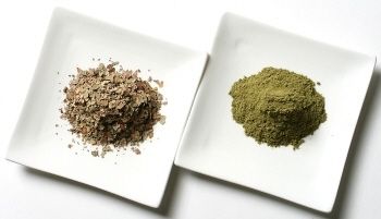 柿の葉のパウダーとチップ。チップには色づいた葉を使っているので、ほのかに赤い。香りと効用を謳うが、これをどのような使い方を提案するかは研究中。(写真提供:山田博記氏)拡大画像表示