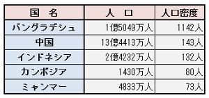 労働集約型産業にとって理想的なのは、「1平方キロメートル当たり100人以上の国」だと言われる。カンボジア、ミャンマー、インドネシアなどはポテンシャルがあるが、バングラデシュの「1000人以上」にはかなわない。しかも、バングラデシュ64県の中で人口が500万人を超える県は4県もある。