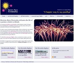 Heavens Above Fireworks社のホームページ。同社は起業した翌年の2005年に、国内のビジネス賞を2部門で受賞した。ペットの遺灰も受け付けている。花火供養の注文1回ごとに、チャリティー団体に寄付している ©Heavens Above Fireworks Limited(以下の画像もすべて同社提供)
