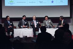 左から藻谷氏、本間氏、岡本氏、猪瀬氏、ロング氏(撮影:前田せいめい、以下同)