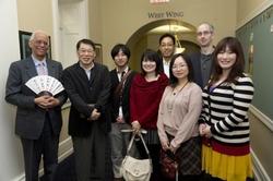 左からスワースモア大学副学長、伊藤果7段、及川拓馬4段、上田初美女王、大西副支部長、野田澤彩乃一級、アラン・ベーカー支部長、伊藤明日香初段