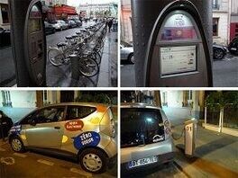 (上段)velibのステーションの様子、(下段)気軽なカーシェアリング「autolib」