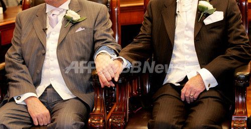 英国・ブライトンの登記所で市民パートナーシップの登録に訪れた同性カップル〔AFPBB News〕先週の未婚の母の話に引き続き、今週も、ヨーロッパで既成の家族の概念がどんどん崩れていくことについて。