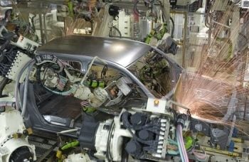 日本車の場合、1980年代に確立された製造工程、つまり鋼板を常温で複数回のプレス成形を行ってパネル部品とし、それをスポット溶接で接合する、というやり方を今も使っている。