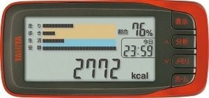 2012年7月に発売された「カロリズム エキスパート AM-140」。6秒ごとに体の動きを分析し、「安静」「生活」「歩行」「走行」の4つの行動に判定し、その消費カロリー、活動時間、距離、歩数も計測・表示する。