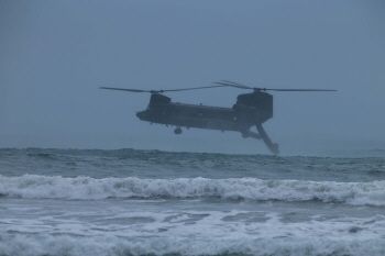 キャンプペンドルトン沖でヘリコプターからゴムボートを下ろす陸上自衛隊(写真:米海兵隊)