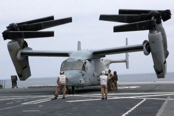 「ひゅうが」に着艦し折り畳みを開始したオスプレイ(写真:米海兵隊)