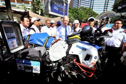 バイク愛好家5人を見送るナジブ首相(中央)、写真提供:マレーシア首相府