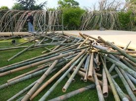 「三保の松原」のある静岡から特別に運ばれた竹を使って、舞台がつくられた