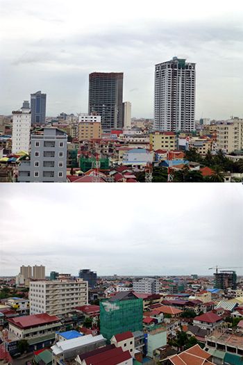 カンボジア首都プノンペンの中心エリア。高級サービスアパートメントやオ フィスビルの開発が次々とスタートしている。大型ビルの建設も目につき始めた(写真提供:筆者、以下同)