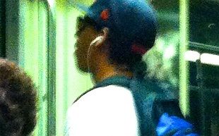 ハリウッドとダウンタウンを結ぶ地下鉄ブルーライン(Blue Line)の車内。料金は一律30セント。自転車も持ち込める(著者撮影、以下同)ハリウッド駅から地下鉄に乗る。乗客の8割はキャップを被り、そのうち2割はタトゥーを入れている。