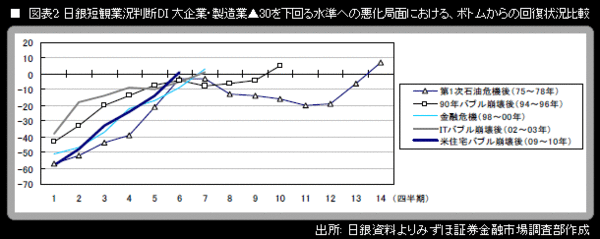 大企業・製造業の業況判断DI(「良い」-「悪い」)は+1(前回調査比+15ポイント)。弊社が予想していた▲1を上回った。同DIがプラスの数字になったのは、2008年6月調査以来2年ぶりのことである。中小企業・製造業の業況判断DIも、連動して大幅に改善した。