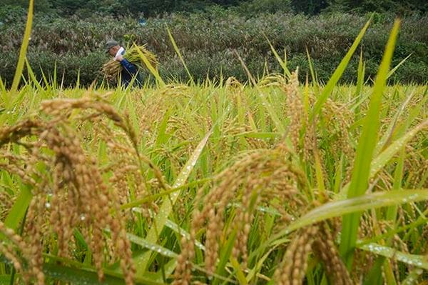小宮の田んぼの畦で、サンプル刈り取りの合間に菅野宗夫(かんの・むねお)さんが話してくれた。