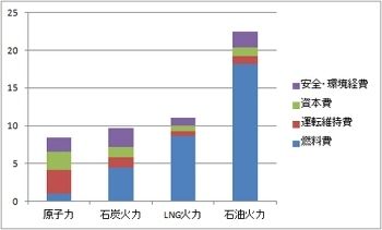 政府のコスト検証委員会の参考資料を読めば分かるように、原発の燃料費は1~2円/kWhで、運転維持費3円を加えても変動費は4~5円/kWh程度だ。これに対してLNG火力でも変動費は9円/kWh、石油火力に至っては19円/kWhである。