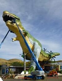 ドラムヘラーの町にあるメインテナンス中の世界最大の恐竜
