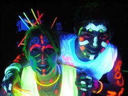 もちろん、真っ暗闇の中で、ボールも相手の姿も見えなければゲームにならない。でも、顔やウェア、ボール、ラケットに蛍光塗料を塗り、紫外線(UV)ライトを点けると、暗闇の中に人の姿が怪しく浮かび上がる。そう、まるで、レイブパーティーのような興奮の中で、悲鳴と歓声を上げながらスポーツを楽しめるのだ。