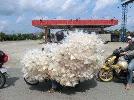 1台のホンダ(125cc)に家族全員4人がまたがっているなんていうのは、当たり前。長さ5メートルもある建材を運んでいたり、2メートル四方はある大型の建築用ガラスをおそろしい空気抵抗を受けながら運んでいたりする姿などは、この国の風物詩となっている。