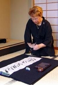 海外で日本の文化がいろいろと注目されている中、ヨーロッパ人で書道の達人はいないだろうかと探していた。筆の運び、墨の濃淡が描き出す書というアートで、私たち日本人を感銘させるような人を。それがフランス人のマンダ女史だった。