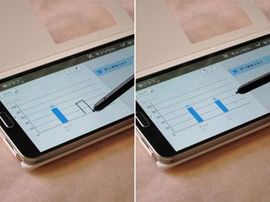 スマートグラフ機能は手書きで範囲を記す(写真左)と、自動でグラフを作成(写真右)。このような利便性の高い機能を数多く有することも、Lサイズスマホが世界のビジネスパーソンの間で支持を集めている理由のひとつだろうこのような点が、米国顧客満足度指数(ACSI)の調査で「Note」シリーズが高い評価を受け、海外でシェアを高めている理由なのだろう。