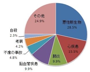 主な死因別死亡数の割合(2011年)出典:厚生労働省・平成23年人口動態統計月報年計(概数)の概況よりグラフ化