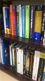 自宅書架には留学中に親しんだ書籍が並ぶ