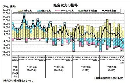 1月14日に発表された貿易統計(速報)では、日本の貿易赤字は1兆2543億円で、17カ月連続の赤字だ。経常収支も5928億円の赤字で、過去最大になった。まだ元気なのは自動車だけで、電機製品はすでに輸入超過である。