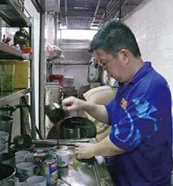 コンデンスミルクとコーヒーを混ぜ合わせる手さばきの早さは、まさに職人ワザ
